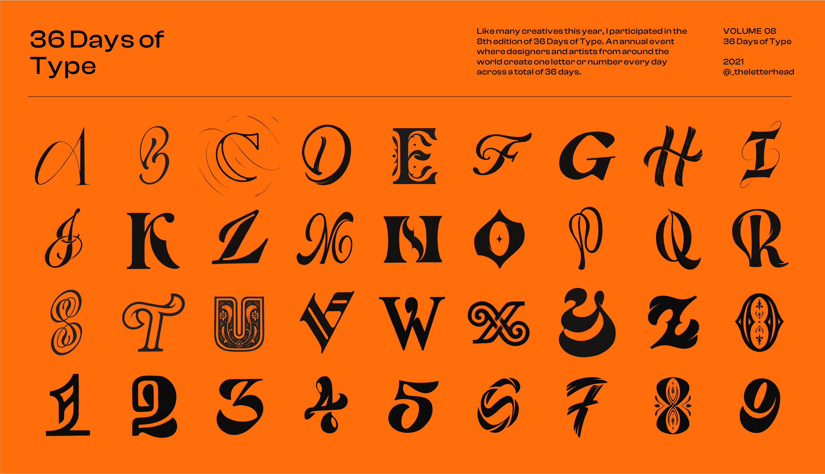 In this year's edition of the annual event I was intending to create letterforms which were partially inspired by the victorian era. The goal was to keep the letterforms clean and with a touch of elegance. The complete project is showcased here